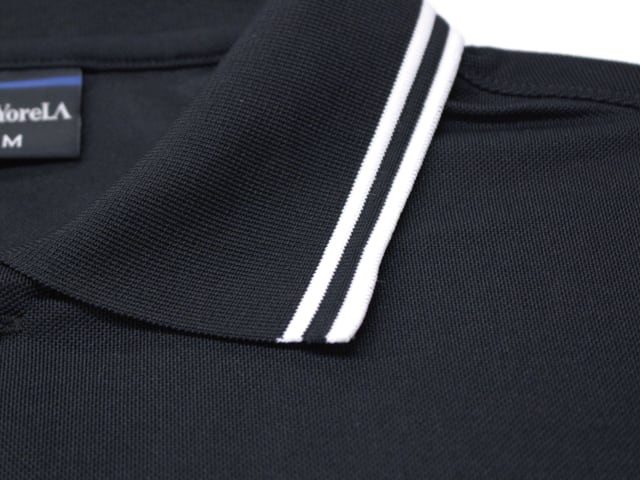 襟と袖口にラインが入ったスポーティーなポロシャツ。